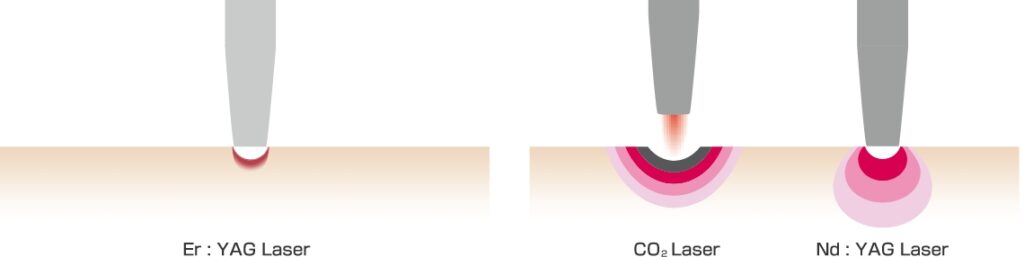 エルビウム・ヤグレーザーは、水分に反応して働くため、照射した部分の表面を中心に作用します。